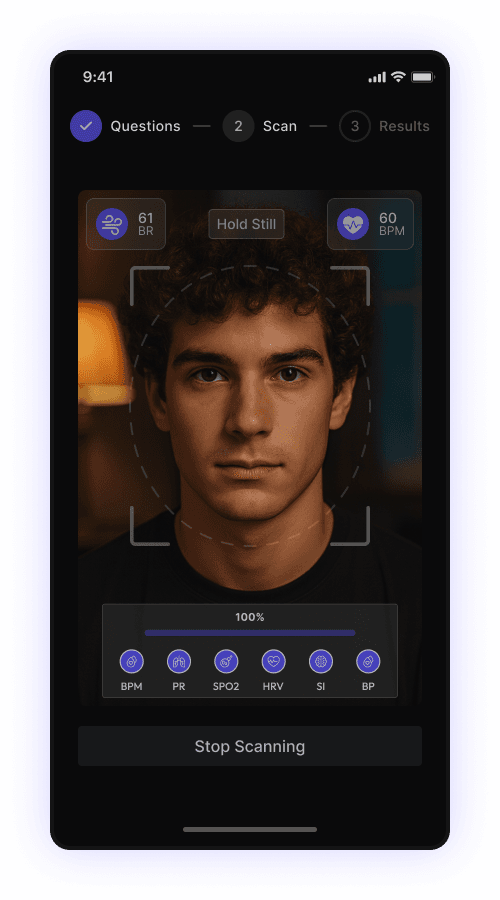 Analyze 20+ health markers, from blood pressure and heart rate to cardiovascular risk. Fast, reliable, and designed for the real-world.